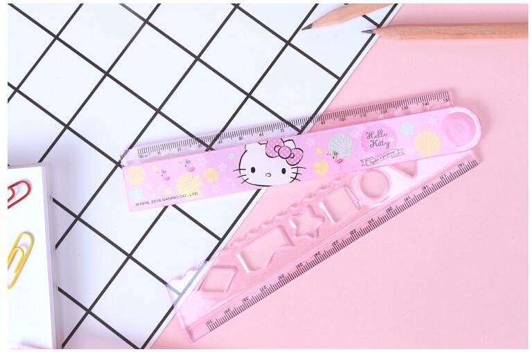 HELLOKITTY卡通折疊尺 小學生用折疊尺KT貓多功能加長卡通直尺30cm凱蒂貓尺子波浪尺格尺文具兒童學習用品