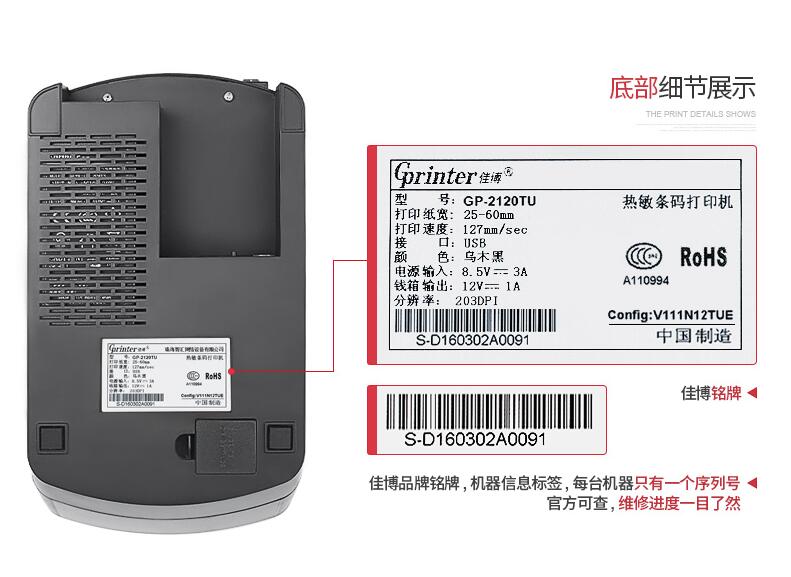佳博GP2120TU熱敏打印機(jī)不干膠三防貼紙手機(jī)服裝吊牌貨架條碼藍(lán)牙二維碼奶茶超市面包食品價格倉庫標(biāo)簽打印機(jī)